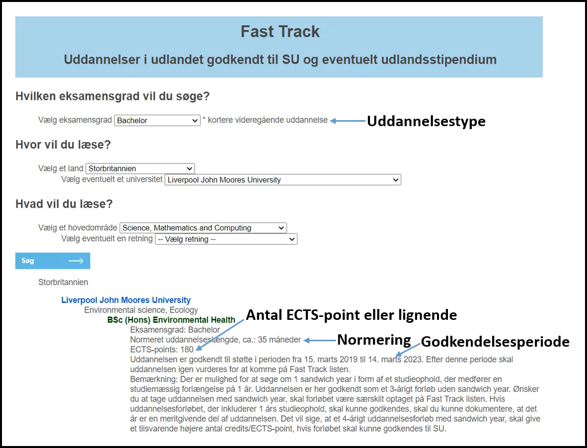 Du finder alle uddannelser, der er godkendt til SU, på Fast Track-listen og søger SU til dem i minSU